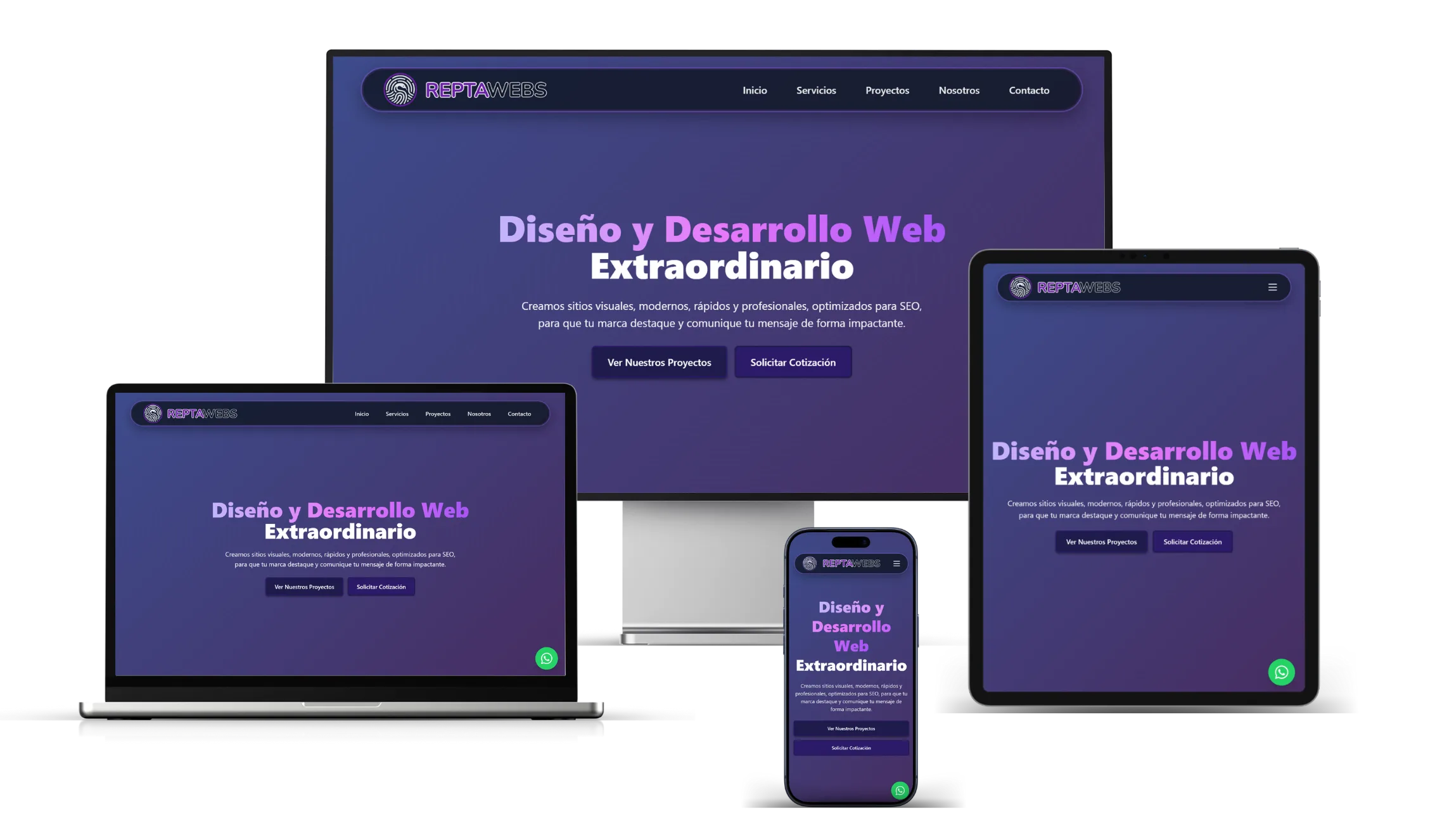Creamos sitios visuales, modernos, rápidos y profesionales, optimizados para SEO, para que tu marca destaque y comunique tu mensaje de forma impactante.